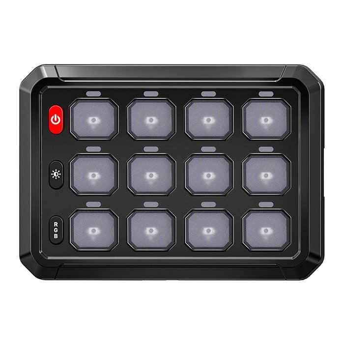 سوئیچ پنل 12 کانال بیسیم یک پنل کنترل حرفهای و هوشمند است که امکان مدیریت همزمان دوازده تجهیزات برقی مختلف در خودروهای آفرودی، کمپرها، ونهای مسافرتی، وانتهای تجهیزاتی و قایقها را فراهم میکند. این پنل جایگزینی کامل برای سیمکشیهای پیچیده و نامرتب است و با استفاده از آن میتوان تمامی تجهیزات برقی خودرو را بهصورت متمرکز، امن و راحت کنترل کرد. این محصول برای خودروهایی که به چندین دستگاه برقی پرمصرف نیاز دارند ایدهآل است. میتوان چراغهای لایت بار، چراغهای RGB، پروژکتور، فن، پمپ آب، کمپرسور باد، وینچ و سایر تجهیزات را تنها با یک پنل کنترل کرد و نیازی به چندین کلید و رله جداگانه نیست. kz-cp-12-rgb-acc-wx