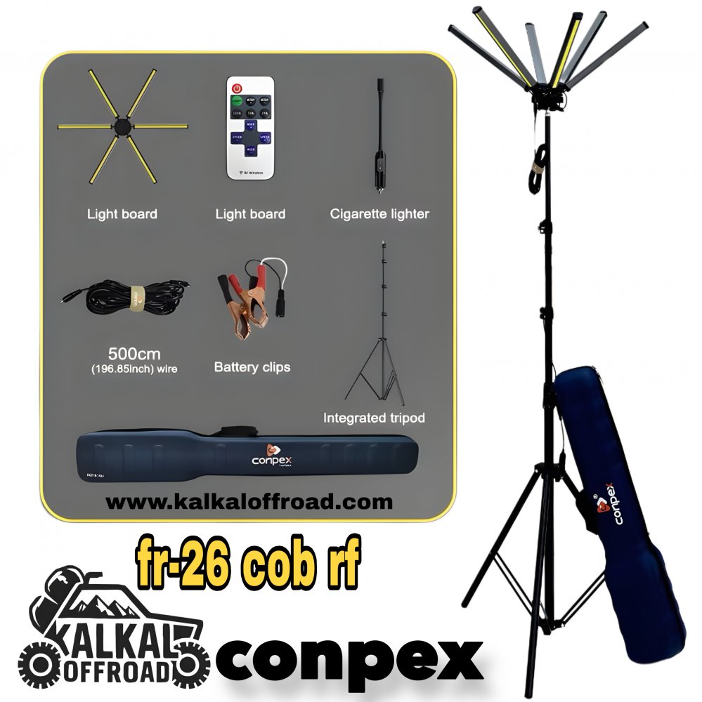 چراغ کمپینگ ۶ پر کانپکس مدل FR-26 COB RF با سه پایه آلومینیومی و ریموت کنترل
